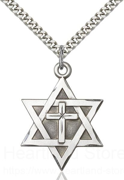 This large Star of David with Cross Pendant is made of sterling silver and is 1ΒΌ" high.