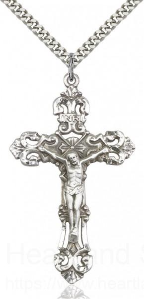 About this Large Sterling Silver Crucifix Pendant + 24" 2.4mm Rhodium Plate Chain + Clasp