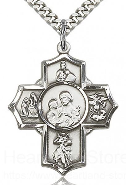 About this 5 Way Cross Firefighter Medal, Sterling Silver + 27" 2.4mm Rhodium Plated Endless Chain