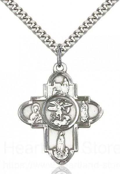 About this Our Lady 5 Way Cross Pendant, Sterling Silver + 24" 2.2mm Sterling Silver Chain + Clasp