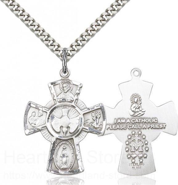 About this 5 Way Cross Pendant, Sterling Silver + 24" 2.2mm Sterling Silver Chain + Clasp