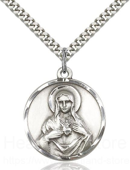 About this Immaculate Heart of Mary Medal, Sterling Silver + 24" 2.2mm Sterling Silver Chain + Clasp