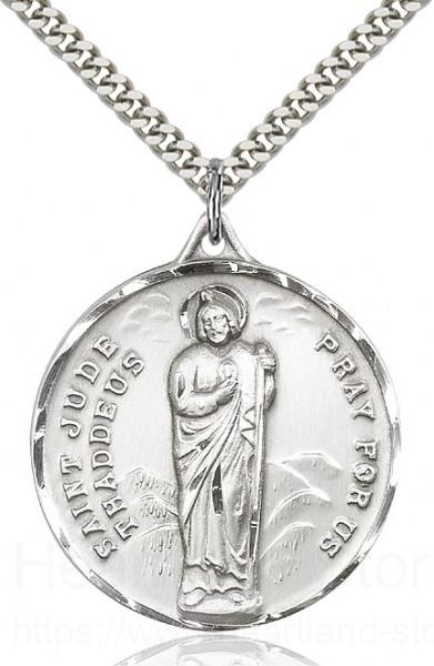 About this Large Men's Sterling Silver Saint Jude Medal + 24" 2.2mm Sterling Silver Chain + Clasp
