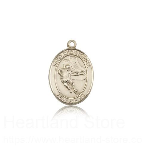 About this St. Christopher Hockey Medal, 14 Karat Gold, Medium