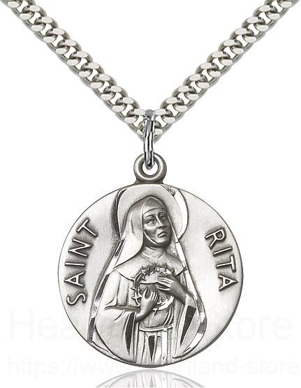 About this St. Rita of Cascia Medal, Sterling Silver + 24" 2.2mm Sterling Silver Chain + Clasp