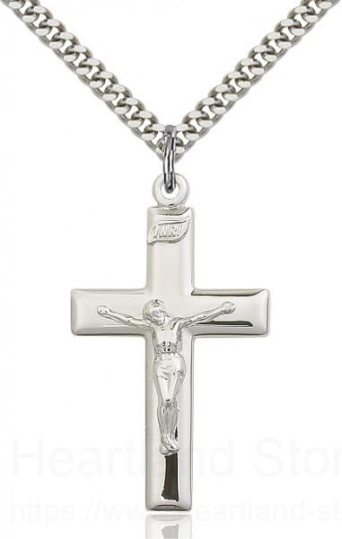 About this Crucifix Pendant, Sterling Silver + 24" 2.2mm Sterling Silver Chain + Clasp