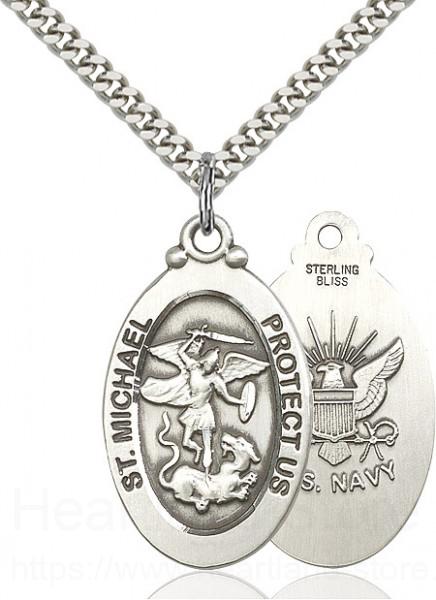 About this St. Michael Navy Medal, Sterling Silver + 24" 2.2mm Sterling Silver Chain + Clasp