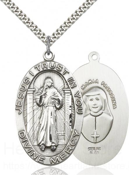 About this Divine Mercy Medal, Sterling Silver + 24" 2.2mm Sterling Silver Chain + Clasp