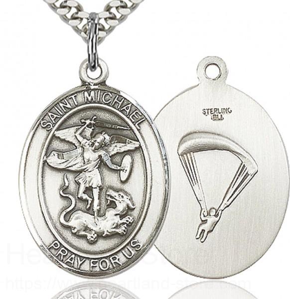 St. Michael Paratrooper Medal This St. Michael Paratrooper Pendant is made of sterling silver and is approximately the size of a quarter.