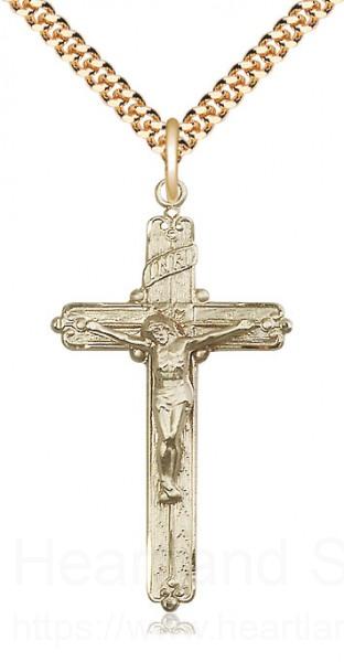 About this 14k Gold Filled Crucifix Pendant + 24" 2.4mm Gold Plated Endless Chain