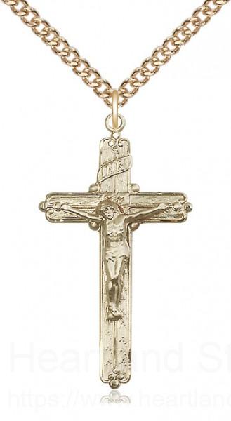 About this 14k Gold Filled Crucifix Pendant + 24" 2.2mm Gold Filled Chain with Clasp
