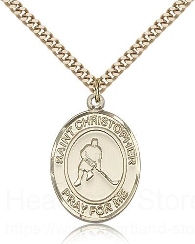About this St. Christopher Ice Hockey Medal, Gold Filled, Large