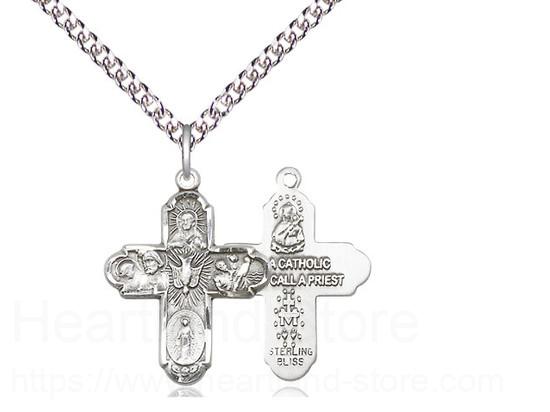 This 5 Way Cross Pendant is paired with an 18 inch sterling silver lite curb chain as pictured. All medals are gift boxed in a light blue velvet jewelry box ready for gift giving.