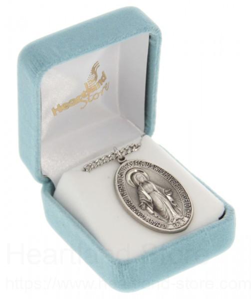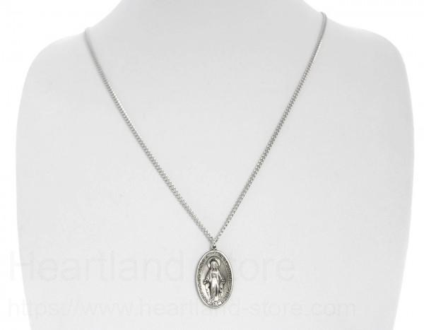 What a wonderful way to honor the Blessed Mother by wearing this stunning men's large miraculous necklace. The elongated oval shaped, the raised image of Mary and the traditional design make for a cherished devotional.