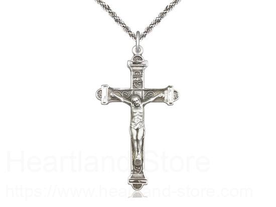 About this Men's Crucifix Pendant Antique Silver Accents Cross Bar Edges + 20" 1.8mm Sterling Silver Chain + Clasp
