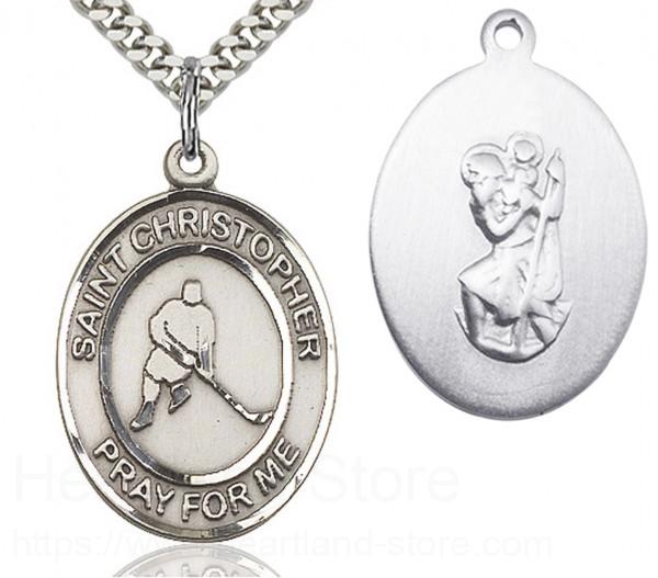 About this St. Christopher Ice Hockey Medal, Sterling Silver, Large + 24" 2.4mm Rhodium Plate Chain + Clasp