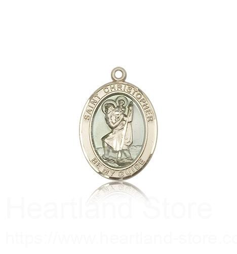 St. Christopher Medal This St. Christopher Pendant is made of 14 Karat Gold and is approximately the size of a nickel. The jewelry pendant is sold individually and does not come with a chain. All medals are gift boxed in a beautiful blue velvet hinged jewelry gift box.