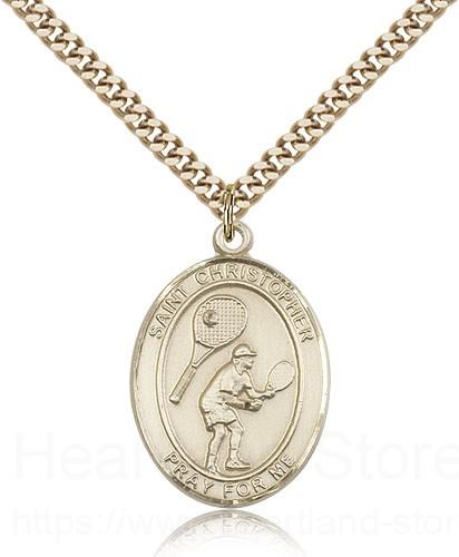 About this St. Christopher Tennis Medal, Gold Filled, Large