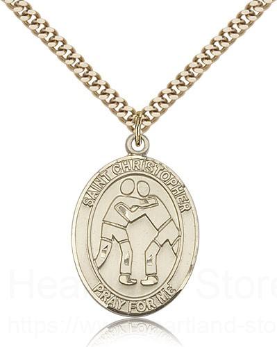 St. Christopher Wrestling Medal, Gold Filled, Large