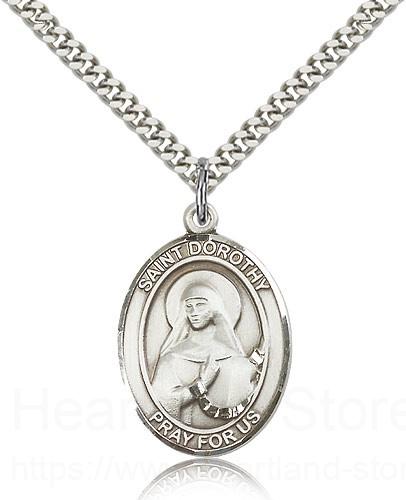 St. Dorothy Medal This St. Dorothy Pendant is made of sterling silver and is approximately the size of a quarter.