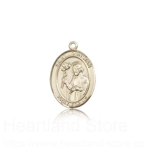 This St. Dunstan Pendant is made of 14 Karat Gold and is approximately the size of a nickel. The jewelry pendant is sold individually and does not come with a chain. All medals are gift boxed in a beautiful blue velvet hinged jewelry gift box.