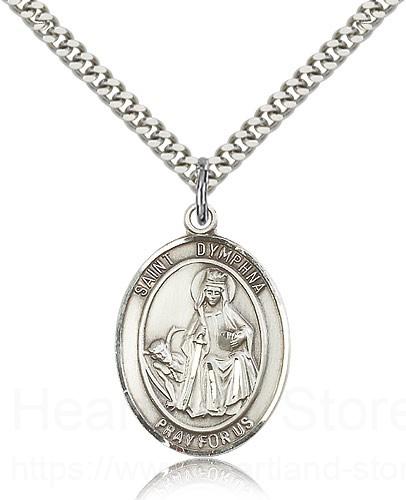 St. Dymphna Medal This St. Dymphna Pendant is made of sterling silver and is approximately the size of a quarter.