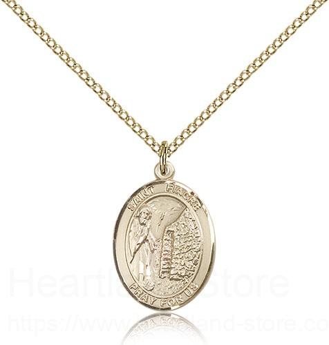 This St. Fiacre Pendant is made of gold filled and is approximately the size of a nickel. The jewelry pendant is paired with an 18 inch gold filled light curb chain as pictured. All medals are gift boxed in a beautiful blue velvet hinged jewelry gift box.