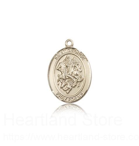 This St. George Pendant is made of 14 Karat Gold and is approximately the size of a nickel. The jewelry pendant is sold individually and does not come with a chain. All medals are gift boxed in a beautiful blue velvet hinged jewelry gift box.