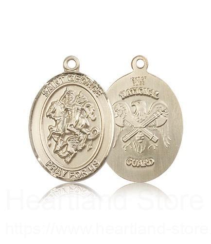 This St. George National Guard Pendant is made of 14 Karat Gold and is approximately the size of a quarter. The jewelry pendant is sold individually and does not come with a chain. All medals are gift boxed in a beautiful blue velvet hinged jewelry gift box.