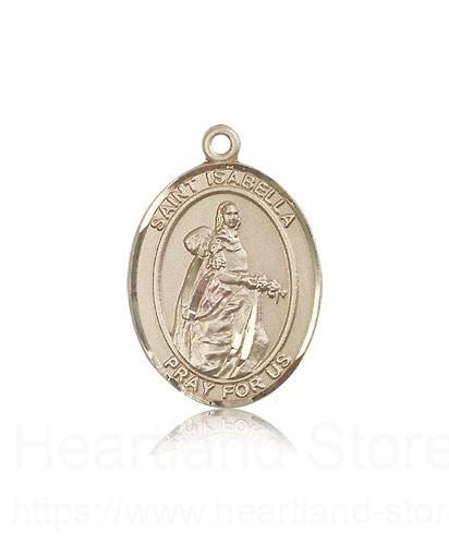 This St. Isabella of Portugal Pendant is made of 14 Karat Gold and is approximately the size of a quarter. The jewelry pendant is sold individually and does not come with a chain. All medals are gift boxed in a beautiful blue velvet hinged jewelry gift box.