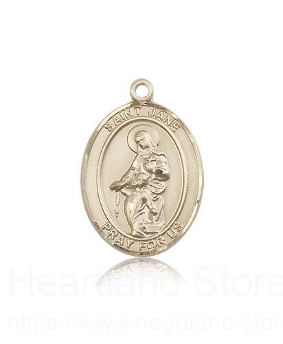 St. Jane of Valois Medal This St. Jane of Valois Pendant is made of 14 Karat Gold and is approximately the size of a quarter. The jewelry pendant is sold individually and does not come with a chain. All medals are gift boxed in a beautiful blue velvet hinged jewelry gift box.