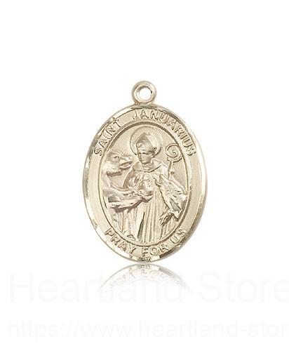 This St. Januarius Pendant is made of 14 Karat Gold and is approximately the size of a quarter. The jewelry pendant is sold individually and does not come with a chain. All medals are gift boxed in a beautiful blue velvet hinged jewelry gift box.