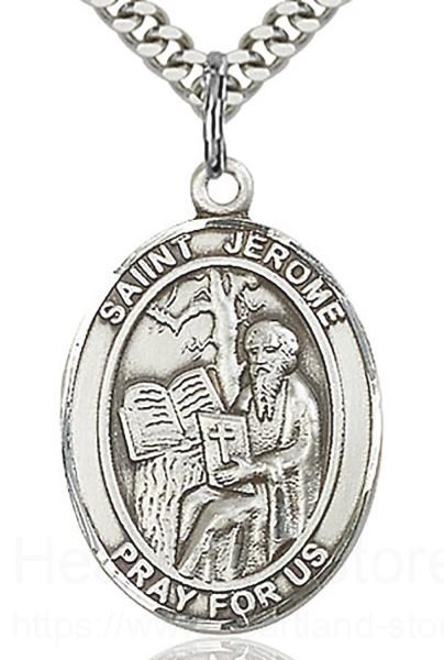 About this St. Jerome Medal, Sterling Silver, Large + 24" 2.4mm Rhodium Plate Chain + Clasp