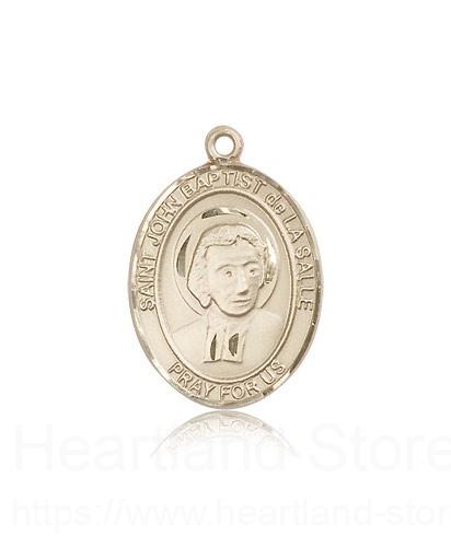 This St. John Baptist De La Salle Pendant is made of 14 Karat Gold and is approximately the size of a quarter. The jewelry pendant is sold individually and does not come with a chain. All medals are gift boxed in a beautiful blue velvet hinged jewelry gift box.
