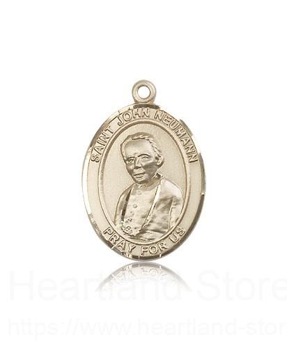 This St. John Neumann Pendant is made of 14 Karat Gold and is approximately the size of a quarter. The jewelry pendant is sold individually and does not come with a chain. All medals are gift boxed in a beautiful blue velvet hinged jewelry gift box.
