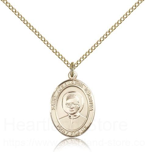 This St. Josemaria Escriva Pendant is made of gold filled and is approximately the size of a nickel. The jewelry pendant is paired with an 18 inch gold filled light curb chain as pictured. All medals are gift boxed in a beautiful blue velvet hinged jewelry gift box.