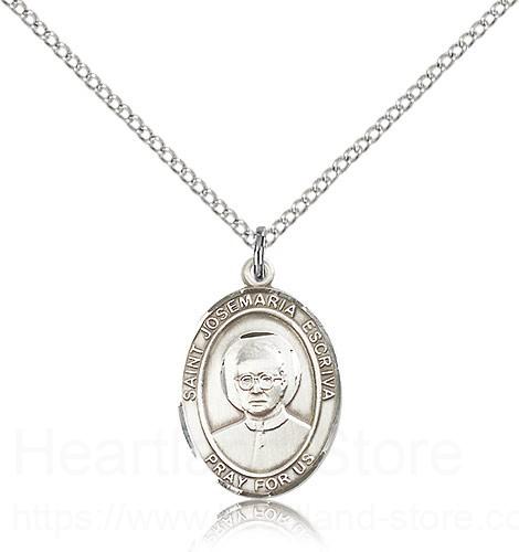 This St. Josemaria Escriva Pendant is made of sterling silver and is approximately the size of a nickel. The jewelry pendant is paired with an 18 inch sterling silver light curb chain as pictured. All medals are gift boxed in a beautiful blue velvet hinged jewelry gift box.