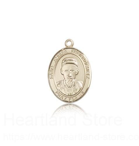 St. Joseph Freinademetz Medal This St. Joseph Freinademetz Pendant is made of 14 Karat Gold and is approximately the size of a nickel. The jewelry pendant is sold individually and does not come with a chain. All medals are gift boxed in a beautiful blue velvet hinged jewelry gift box.