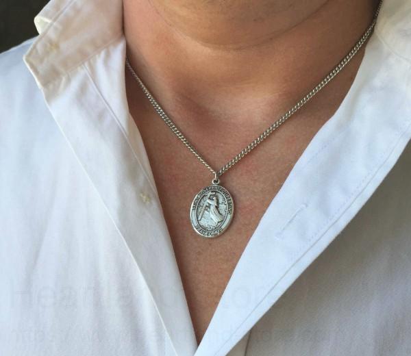Medal with 24" genuine .925 sterling silver curb chain with lobster clasp