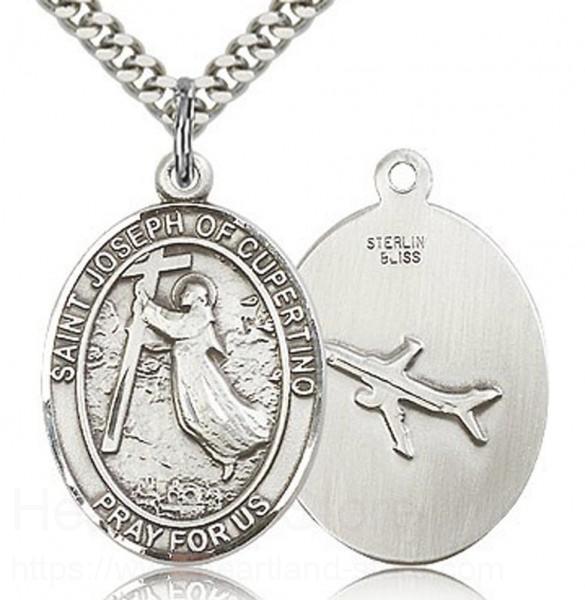 About this St. Joseph of Cupertino Medal, Sterling Silver, Large + 24" 2.4mm Rhodium Plate Endless Chain