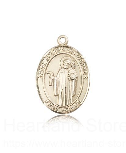 St. Joseph the Worker Medal This St. Joseph the Worker Pendant is made of 14 Karat Gold and is approximately the size of a quarter. The jewelry pendant is sold individually and does not come with a chain. All medals are gift boxed in a beautiful blue velvet hinged jewelry gift box.
