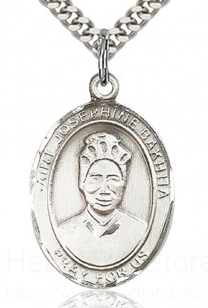 About this St. Josephine Bakhita Medal, Sterling Silver, Large + 24" 2.4mm Rhodium Plate Chain + Clasp
