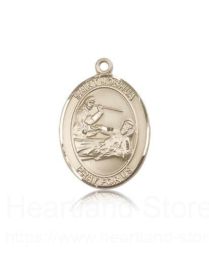 St. Joshua Medal This St. Joshua Pendant is made of 14 Karat Gold and is approximately the size of a quarter. The jewelry pendant is sold individually and does not come with a chain. All medals are gift boxed in a beautiful blue velvet hinged jewelry gift box.
