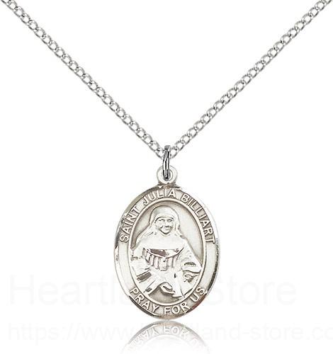 This St. Julia Billiart Pendant is made of sterling silver and is approximately the size of a nickel. The jewelry pendant is paired with an 18 inch sterling silver light curb chain as pictured. All medals are gift boxed in a beautiful blue velvet hinged jewelry gift box.