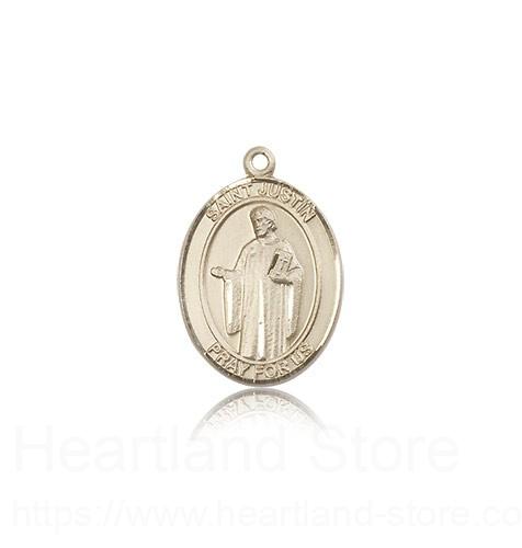 About this St. Justin Medal, 14 Karat Gold, Medium