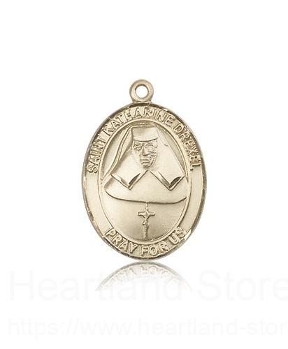 This St. Katharine Drexel Pendant is made of 14 Karat Gold and is approximately the size of a quarter. The jewelry pendant is sold individually and does not come with a chain. All medals are gift boxed in a beautiful blue velvet hinged jewelry gift box.