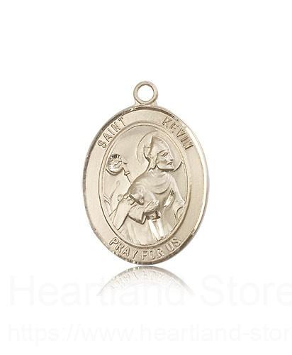 This St. Kevin Pendant is made of 14 Karat Gold and is approximately the size of a quarter. The jewelry pendant is sold individually and does not come with a chain. All medals are gift boxed in a beautiful blue velvet hinged jewelry gift box.