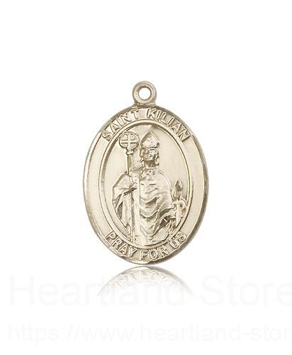 This St. Kilian Pendant is made of 14 Karat Gold and is approximately the size of a quarter. The jewelry pendant is sold individually and does not come with a chain. All medals are gift boxed in a beautiful blue velvet hinged jewelry gift box.