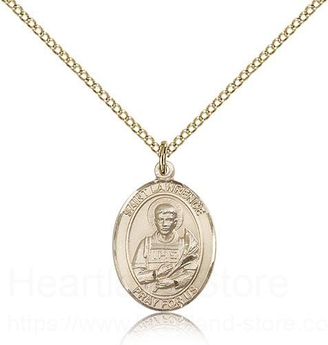 This St. Lawrence Pendant is made of gold filled and is approximately the size of a nickel. The jewelry pendant is paired with an 18 inch gold filled light curb chain as pictured. All medals are gift boxed in a beautiful blue velvet hinged jewelry gift box.