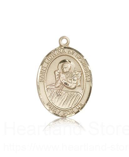 This St. Lidwina of Schiedam Pendant is made of 14 Karat Gold and is approximately the size of a quarter. The jewelry pendant is sold individually and does not come with a chain. All medals are gift boxed in a beautiful blue velvet hinged jewelry gift box.